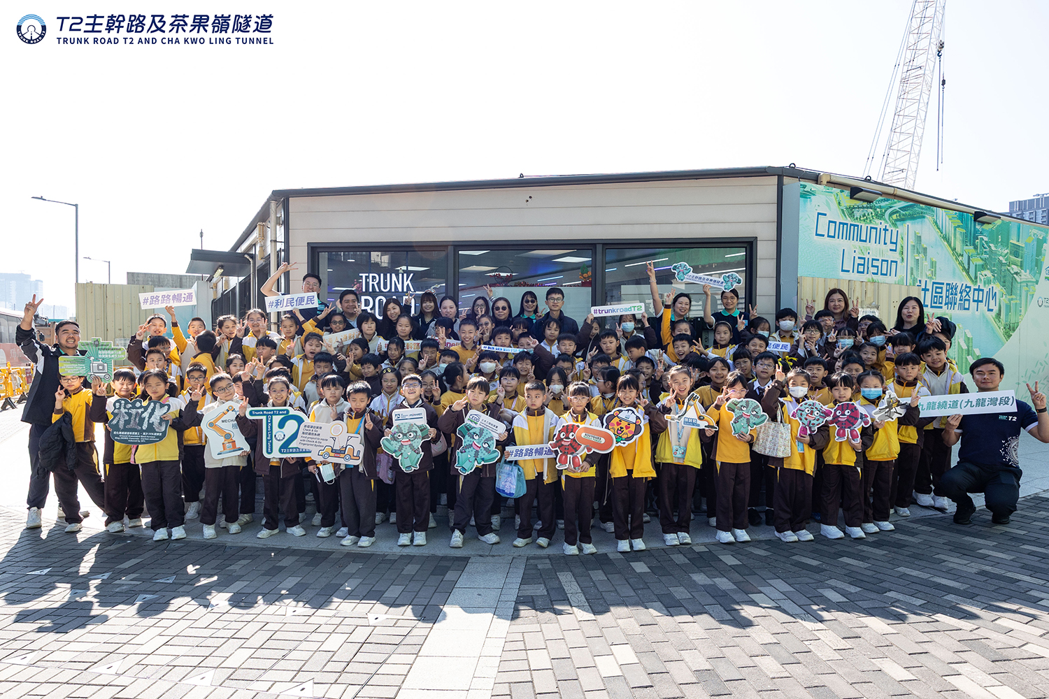 - 東華三院賽馬會大角咀綜合服務中心的小會員於2025年3月8日前來 T2 主幹路及茶果嶺隧道啟德社區聯絡中心參與「創新科技工作坊」。工程團隊首先向小朋友講解T2工程項目的背景、建造方式以及所使用的創新技術,及後各位參加者便自由探索中心內的各種設施。為了使普羅大眾更容易理解有關 T2 的各種工程知識,社區聯絡中心內設置了多項富趣味性的展品,包括隧道結構的拼圖模型、互動牆面遊戲系統以及提供擴增實境(AR)和虛擬實境(VR)的互動遊戲。這些互動式展品不僅增加了展覽的趣味性,也使得無論是成人還是兒童都能通過互動學習深入了解工程科技。