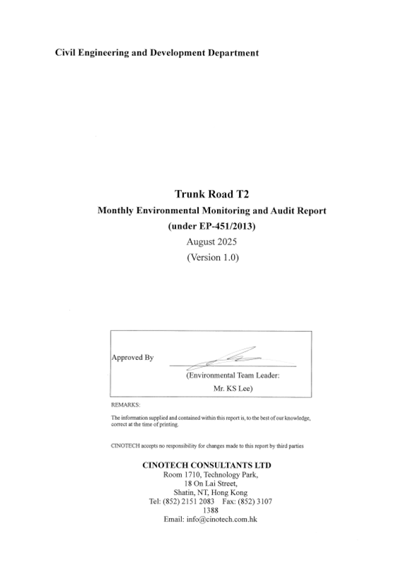 (EM&A) Report prepared by the Environmental Team (ET), Cinotech Consultants