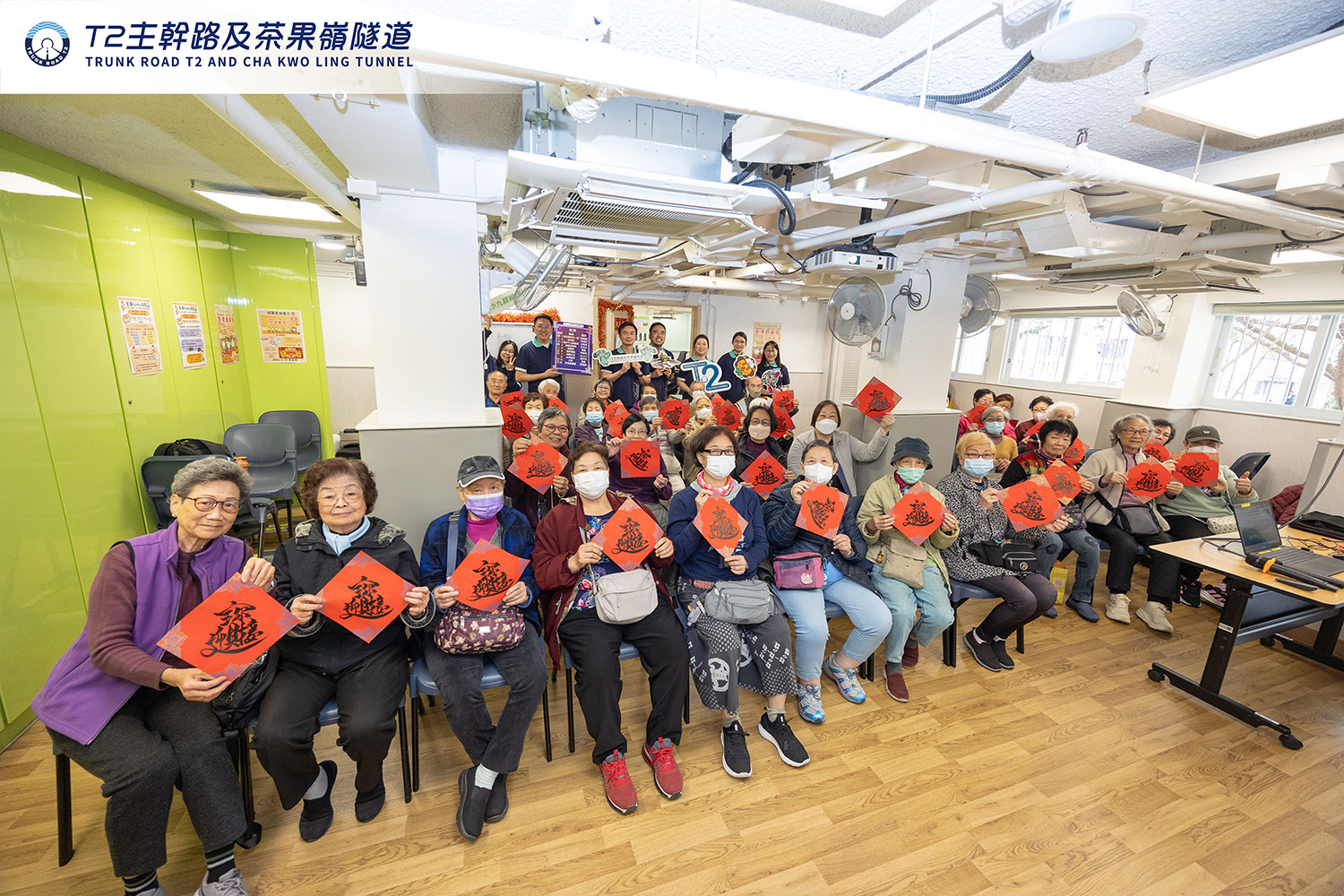 - T2 主干路及茶果岭隧道工程团队于 2026 年 2 月 3 日专程到访循道卫理杨震社会服务处—爱民长者邻舍中心,举行「T2 主干路及茶果岭隧道」创新科技工作坊暨新春派挥春社区外展活动,让长者加深了解 T2 工程项目,同时感受浓厚的节日气氛。
