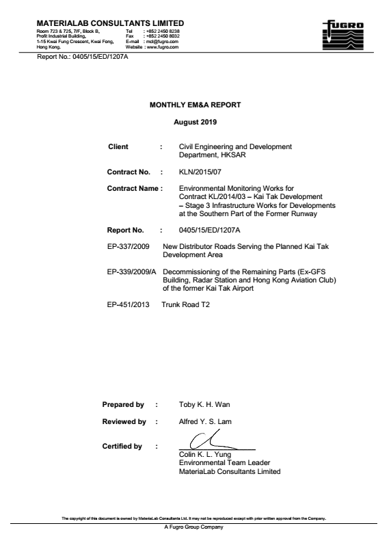 Civil Engineering and Development Department HKSAR has appointed MateriaLab Consultants Limited (MCL) to undertake the Environmental
